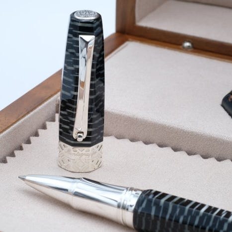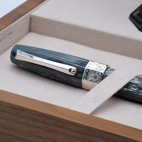 Forseglet med Montegrappa-navnet som tegn på autenticitet langs basen af hætten og kronet af en stor, enkel sten på hætten, er Ca$h-fountainpennen et dristigt statement-udtryk med tydelig flair. Designet til at tiltrække opmærksomhed blander denne pen høj mode, luksuriøst håndværk og legende overdådighed.