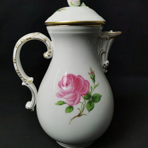 Meissen porcelæns sukkerkande med motivet Fiori sparsi, oprindelse Tyskland, højde 11 cm, diameter 11 cm, periode 1940–1950, i god stand med mindre aldersrelaterede tegn på knoppen af blomsten på låget. Klik på den blå "gå til varen" knap, for at købe eller byde på denne vare. Den samlede pris vil blive vist inden du afgiver dit bud.