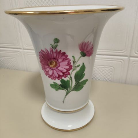 Meissen porcelænsvase i blå løg med blomsterdekoration, 25 cm høj, 12 cm bred og 12 cm dyb, oprindelse Tyskland, dateret 2000–2010, i fremragende stand med få brugsspor. Klik på den blå "gå til varen" knap, for at købe eller byde på denne vare. Den samlede pris vil blive vist inden du afgiver dit bud.