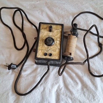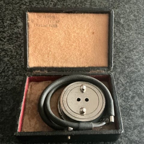 Vintage Collin dynamometer, et metal medicinsk instrument fra Frankrig, dateret 1850–1900, i god brugt stand med aldersrelateret slid. Klik på den blå "gå til varen" knap, for at købe eller byde på denne vare. Den samlede pris vil blive vist inden du afgiver dit bud.