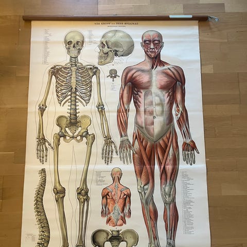 Anatomisk vægkort med titlen Anatomische schoolkaart – Het vaatstelsel van de mens (V 2004) fra DHM Lehrmittelfabrik GmbH, Dresden, i god brugt stand med mindre tegn på alderdom og pletter, cirka 1960–1970, trykt på papir med træstave, 84 cm bred og 200 cm høj. Klik på den blå "gå til varen" knap, for at købe eller byde på denne vare. Den samlede pris vil blive vist inden du afgiver dit bud.