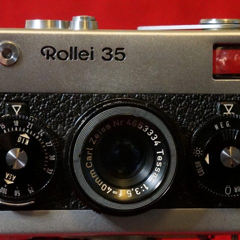 Kameraet på billedet er et Rollei 35, et telemeterkamera (egentlig 'afstandsmåler' eller 'guess-finder') kompakt til 35 mm film, kendt for sin lille størrelse og den høje byggkvalitet.