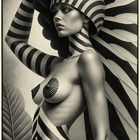 Intet blik, ingen frontalitet: kun en tæt, kontrolleret tilstedeværelse, næsten skulpturel.