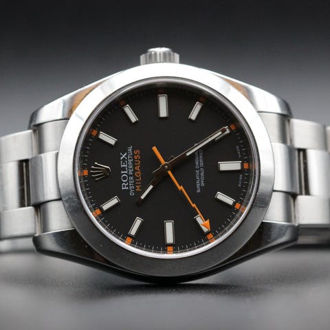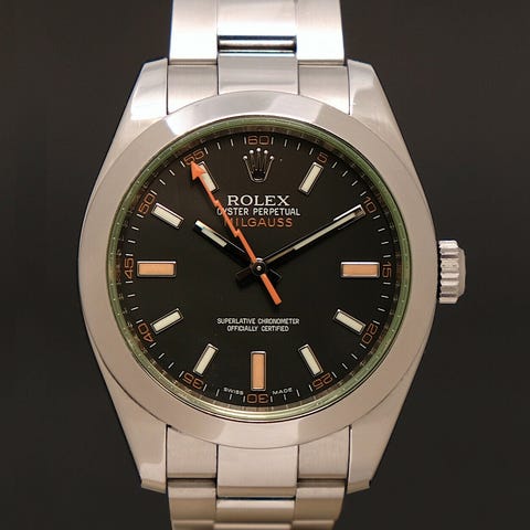 Rolex Milgauss 'Glace Vert' Ref. 116400GV, automatisk bevægelse, kasse af stål 40 mm, armbånd af stål, herreur, periode 2010–2020, meget pæn stand med mindre brugsspor, ingen æske eller papirer; forsikret forsendelse inden for EU. Klik på den blå "gå til varen" knap, for at købe eller byde på denne vare. Den samlede pris vil blive vist inden du afgiver dit bud.