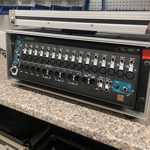 Mixer GLD-80 med flightcase og Dante-kort ombord.
