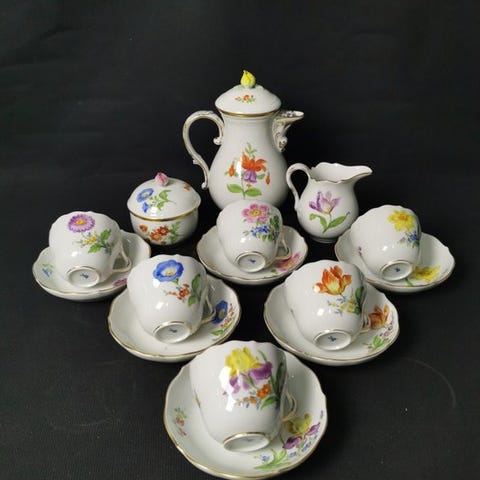 Meissen - Bordservice - Blau & Gold blomsterdekoration 6 stk. middags tallerk...
