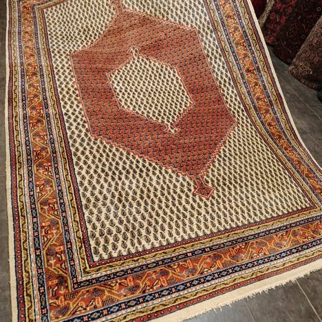 For at komme ind i vores lager, er det blevet renset på et vaskeri, der er specialiseret i håndknyttede tæpper, og er derefter ikke længere brugt.