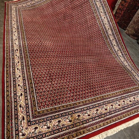 En XL-maskinknudet tæppe af uld på bomuld fra Tyskland, model Sarab – professionelt renset, slutningen af det 20. århundrede, målene 410 x 300 cm, i meget god stand. Klik på den blå "gå til varen" knap, for at købe eller byde på denne vare. Den samlede pris vil blive vist inden du afgiver dit bud.