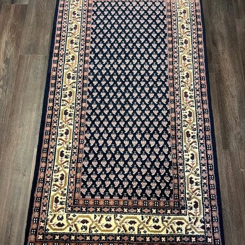 Håndstrikket orientalsk tæppe i uld på bomuld, oprindelse Indien, model Mir - Gereinigd, 295 x 195 cm, professionelt rengjort med certifikat, generelt i god stand med alders- og brugsmærker. Klik på den blå "gå til varen" knap, for at købe eller byde på denne vare. Den samlede pris vil blive vist inden du afgiver dit bud.