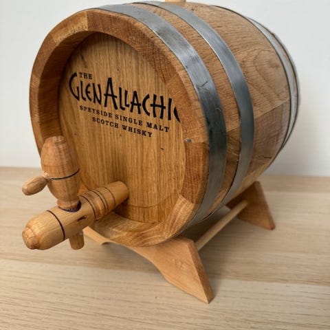 Jeg sælger en flot egbarrel, der er egnet til at fylde alkohol på, med et volumen på 5 liter.