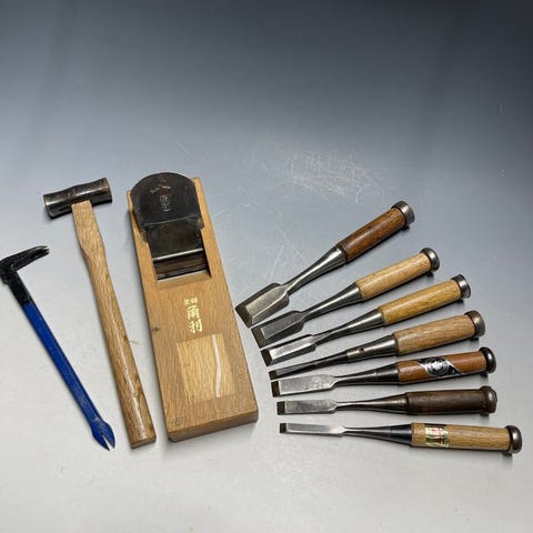 Japansk træskæringsknivssæt – (Brugt, jernblade, træhåndtag)
