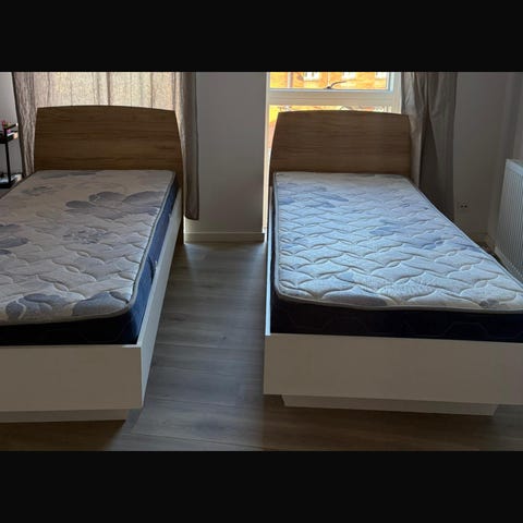 Enkelt seng. Rammekonstruktion med ben og madras, som på billederne er vist med lyst sengetøj. Velegnet som enkeltseng i soveværelse, gæsteværelse eller børneværelse.