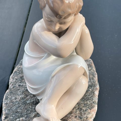 Royal Copenhagen pige ordner hår porcelænsfigur i glaseret porcelæn. Figuren forestiller en siddende pige, der ordner sit hår, iført blå overdel og hvid nederdel. Undersiden er mærket med Royal Copenhagen stempel, modelnummer 4648 samt dreng spiser frokost model nr 865 begge 1 sortering! Velegnet som dekorativ figur til udstilling i stue, vitrineskab eller samling af porcelænsfigurer.