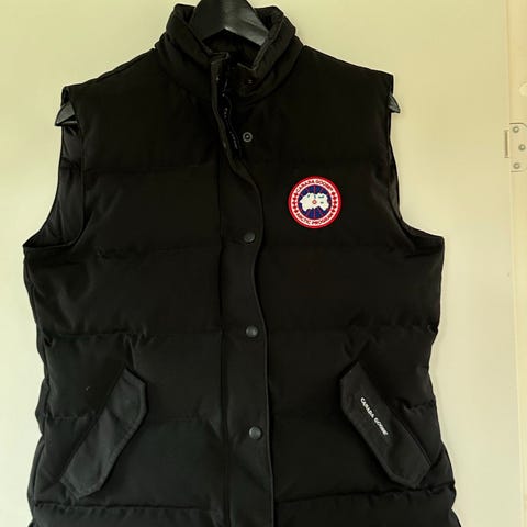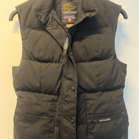 Canada Goose dunvest til kvinder i størrelse XS. Vesten er hvid og foret med dun, hvilket giver god isolering. Modellen har aftagelig hætte med pelskant, gennemgående lynlås foran og quiltet design. Velegnet som yderlag eller som ekstra lag under en jakke i koldere vejr.
