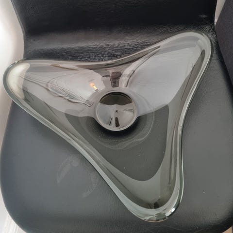 Fionia fad designet af Per Lütken, og et tilsvarende stort fad, som jeg ikke mener er Holmegaard.
