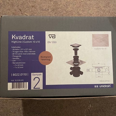 Nyt gulvafløb som Unidrain sælges. Helt nyt I kasse. 800mm med 75 lodret udløb.