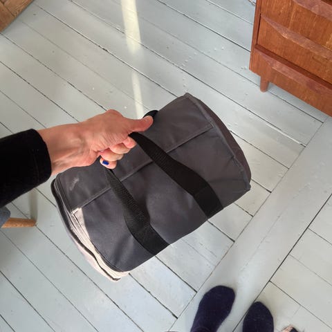 Jysk tyngdedyne i grå farve. Dynen er syet i kvadratiske felter, som fordeler vægten jævnt over kroppen.