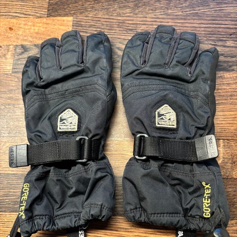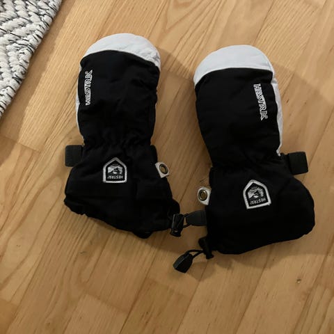 Hestra C zone luffe handsker med 3 fingre til børn i størrelse 7, cirka svarende til børnestørrelse 164. Handskerne er sorte og har justerbar rem ved håndleddet samt elastik for bedre pasform. De har foring indvendigt og forstærket materiale i håndfladen. Velegnet til udendørs brug i koldt vejr, fx hverdag og vinteraktiviteter.