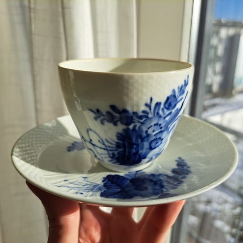 Royal Copenhagen Saksisk Blomst hvidt porcelæn med blomstermotiv og guldkant