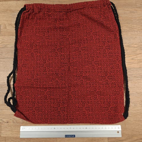Måler ca. 42 cm bred og 32 cm høj. 100% bomuld.