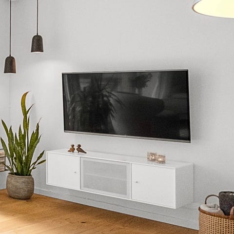 Originalt Montana modulmøbel i hvid, brugt som TV-møbel. Tidløst dansk design i høj kvalitet.