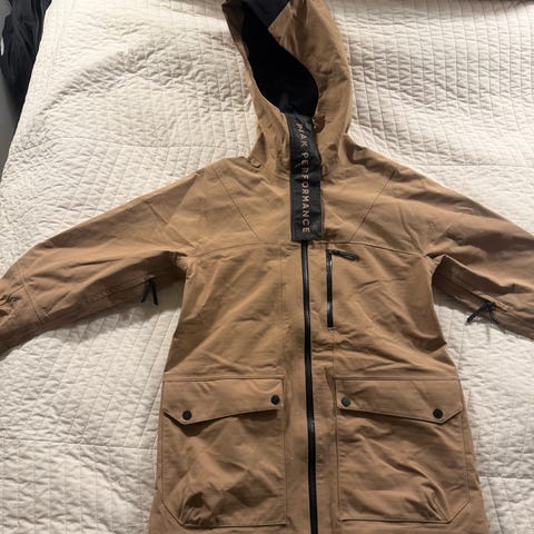 Sprit ny SOS jakke sælges da jeg ikke kommer afsted i år. Jakken er str L og har gode store lommer foran. Der er lynlås under begge arme således at man kan lyne ned for at få lidt luft ind. Lomme til liftkort på armen. Der er naturligvis snefang på den.