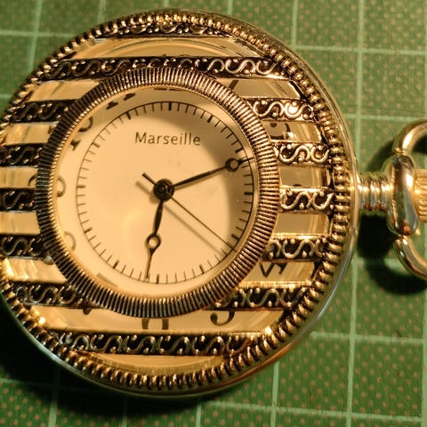 Mekanisk værk, forsølvet urkasse. Vestekæde medfølger