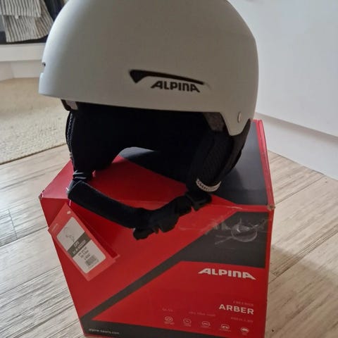 Alpina skihjelm. Børneskihjelm, Kun brugt én gang. Letvægt på kun 335 g. Nypris 1200 kr. Carrat LE skihjelm med hvid basefarve og pink blomsterdekoration. Hjelmen har justerbar størrelse fra 51 til 55 cm og vejer 335 gram. Uvex børneskibrille kan følge med gratis.