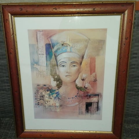 Motivet er en gengivelse af et vægmaleri fra Dronning Nefertaris grav.