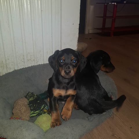 Inkluderet i vores hvalpepakke er også et "livstids abonnement " på alle spørgsmål. Jeg er ikke dyrlæge men har avlet gravhunde i 12 år og haft hund(e) i mere end 25 år. Jeg har sat mig en del ind i gener, avl osv. men ved selvfølgelig ikke alt og henviser til dyrlæge hvis jeg er det mindste i tvivl (også selvom det er i weekenden).