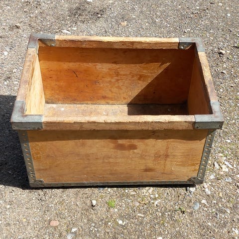 H. kibsgaard trækasse med stålforstærkende kanter.