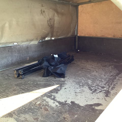 Easyline trailer med presenning. Trailer med én aksel, metalsider og bagklap, udstyret med lygter, reflekser og nummerpladeholder. Presenning monteret med elastikker over ladet. Velegnet til transport af gods, haveaffald og lignende bag personbil.