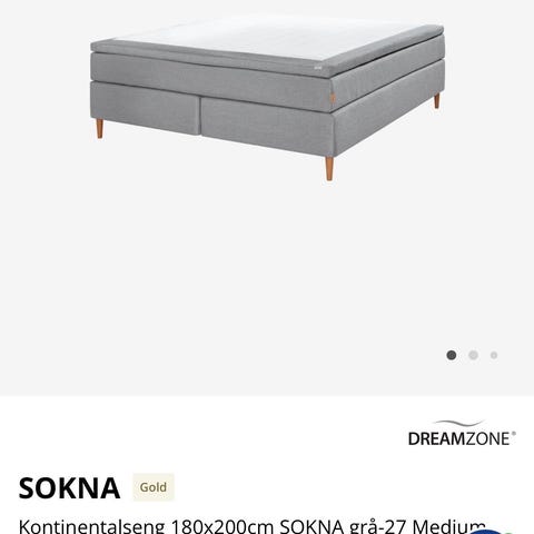 Jysk Dreamzone seng med polstret gavl og to separate madrasser. Sengen har mørkgråt tekstilbetræk på både ramme og gavl med knapdetaljer. Dreamzone-madrasserne er vendbare og har lys overflade. Velegnet som dobbeltseng i soveværelse eller gæsteværelse.