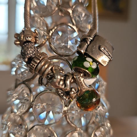 Pandora armbånd 20 cm og charms i sølv til kvinde. Sættet består af et klassisk Pandora slangekæde-armbånd med lås samt 20 charms i sølv samt 3 stopper/låser. Charmsene er designet til at passe på Pandora-armbånd og kan kombineres og omarrangeres efter behov.