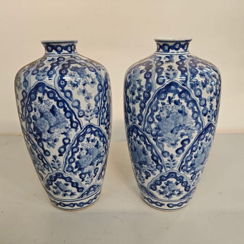 Par kinesiske vaser med blåsort dekor