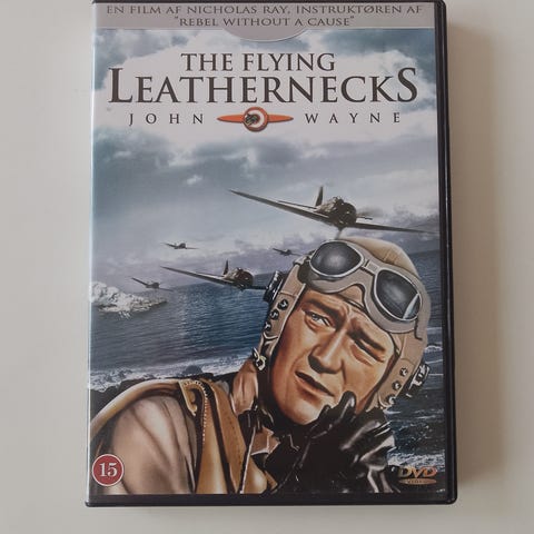 DVD: The Flying Leathernecks med John Wayne. Krigsfilm om 2. Verdenskrig. Indeholder autentiske klip fra 2. Verdenskrig. Produceret i 1951.