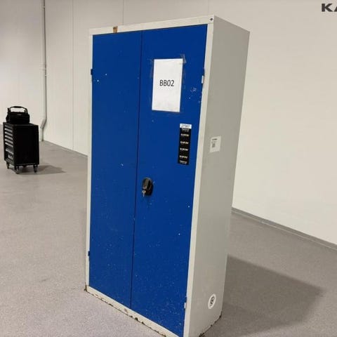 Værkstedsskab og reol. Værkstedsskab - nøgle medfølger.