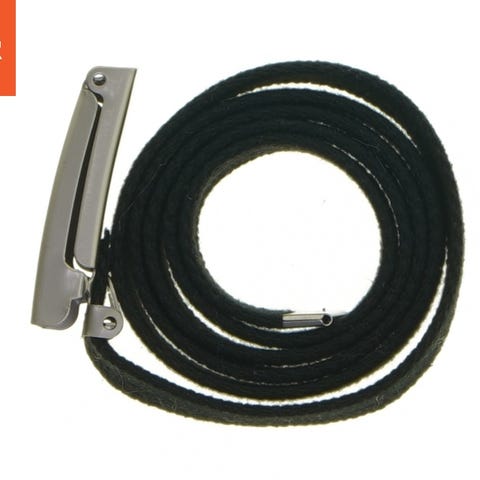 Flettet bælte med en længde på 78 cm, lavet af sort materiale. Bæltet er designet med en enkelt fletteteknik og har flere løse ender, der giver et dekorativt udtryk.