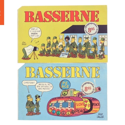 Tegneserie. Humoristiske striber om Jens Fup, S'janten, Fjotte, general Langsohm, frøken Olsen og alle de andre fra Pløresødallejren