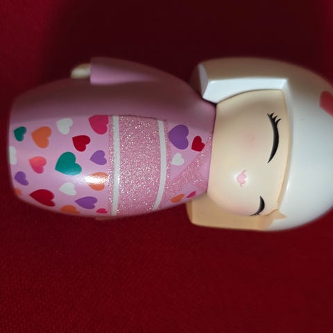 Figuren viser en karakter med sort hår, lukket øjne og en lilla kimono dekoreret med en gylden drage. Den er 10 cm høj. Figuren er en del af Kimmidoll kollektionen, som kan ses på bunden af figuren.