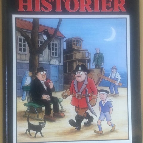 Sammendrag: Der var engang en mand i et stribet sæt tøj, som lagde et æble i sin vindueskarm, så det kunne blive modnet af solen. Men æblet faldt ned i hovedet på mormor nede i haven, som blev så forskrækket, at hun skreg højt og skræmte katten, som for op i træet. Alt det der skete derefter, skal vi ikke fortælle her, men tro det eller ej, det røde æble blev skyld i en masse ballade i den lille by.