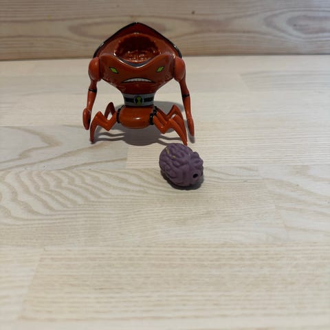 Denne figur forestiller en karakter fra den populære tegnefilmserie Ben 10. Figuren er 5x4,5 cm i størrelse og har en primært grå farvetone med sorte og gule detaljer. Basen af figuren har mærkningen 'BEN040' og er licenseret af Cartoon Network. Figuren er lavet af plast og er en del af samleobjekter fra serien. Figuren hedder Cannonbolt.