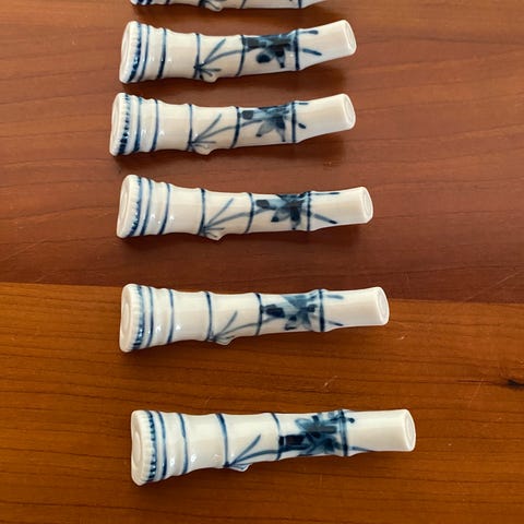 Dette er et sæt bestående af seks knive med bambusmotiv på håndtagene og en matchende knivholder, der også har bambusdesign. Håndtagene er designet til at ligne bambusstykker, mens knivbladene er lavet af metal. Knivenes længde er 17 cm, og sættet leveres i en æske. Dette sæt er ideelt til at tilføje et naturligt og rustikt præg til et køkken eller spisebord.