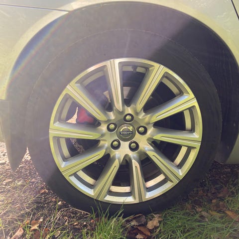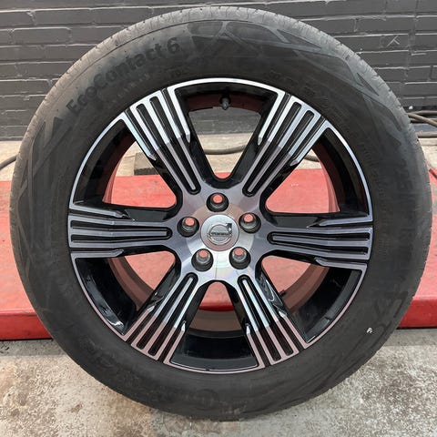 Originale 18" Volvo alufælge som har siddet på en V90 T6 fra 2021.