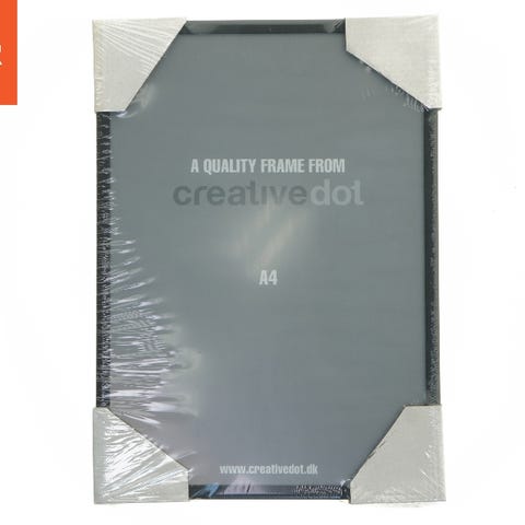 Dette er en A4 billedramme fra mærket Creativedot. Rammen er stadig indpakket i plastik og har en solid konstruktion til beskyttelse af billeder eller dokumenter. Bagsiden har beslag til ophængning på væggen, hvilket gør det nemt at installere rammen i hjemmet eller kontoret.