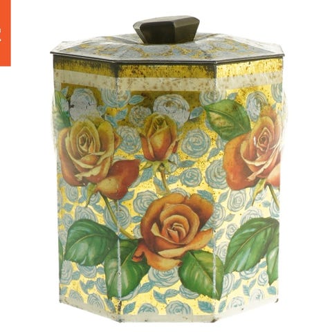 Vintage Blomsterdekoreret dåse (str. 15x11 cm)