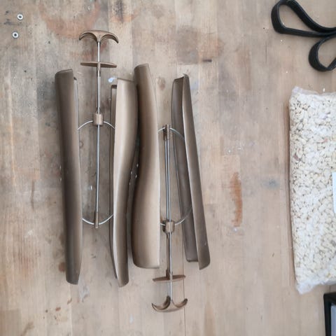 holder til affaldspose. Den består af en cirkulær metalramme med skruer til fastgørelse. Designet er enkelt med en T-formet struktur på en del og en rund metalring