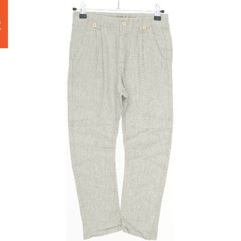 Flotte mørkeblå habitbukser med et subtilt ternet mønster. Bukserne har lommer foran og bagpå, og er designet med en lukning ved taljen. Som nye.