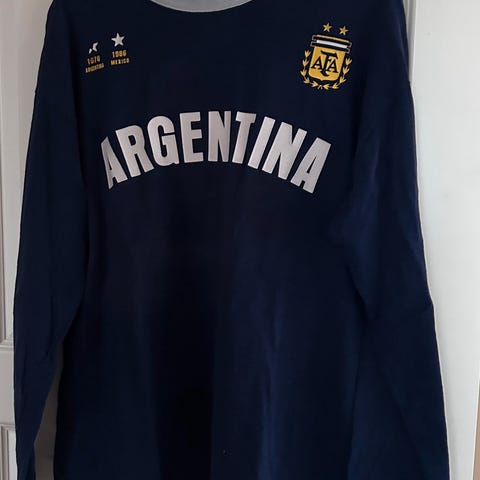 Lionel Messi Argentina. Størrelsen vil jeg gætte på er S eller M, men mærket er slidt af. Super fed trøje, dog er printet slidt som ses på billedet