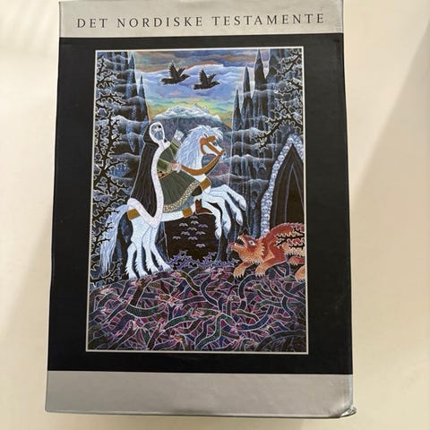 Vagn Lundbye Det Nordiske Testamente bogsæt med 3 bind. Sættet indeholder blandt andet bindet "Gudernes gang på Jorden". Indbundet udgave med smudsomslag. Velegnet til læsere med interesse for nordisk mytologi og skønlitteratur i bogform.